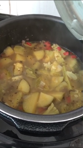 Feche a panela e cozinhe na pressão por 20 minutos. Depois dos 20 minutos, abra a panela e observe que os legumes já estarão cozidos.
